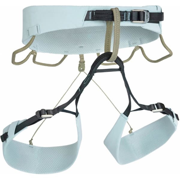 Quatre boucles de pinces à glace : permettent de multiples options d'accrochage des broches à glace et rendent ce harnais compatible avec les les lignes de glace les plus difficiles.