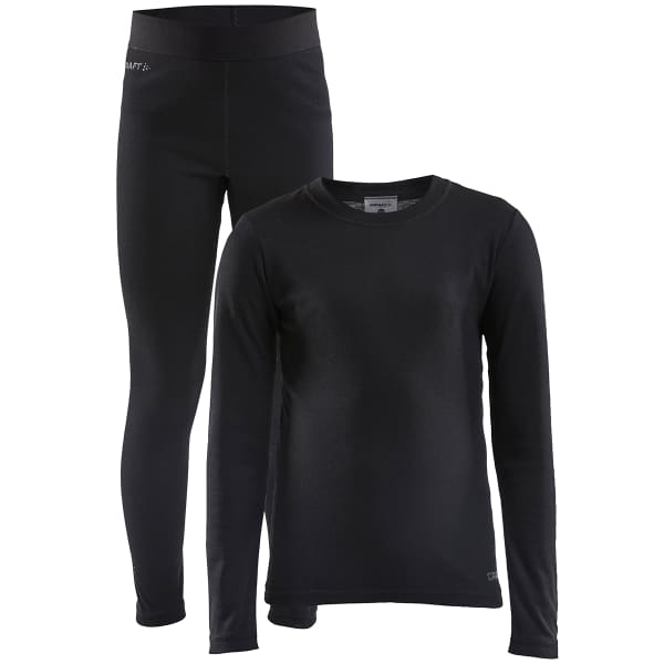 Indispensable pour les jeunes skieurs, le CORE WARM BASELAYER SET JR de Craft est un ensemble de sous-vêtements techniques pour enfant qui comprend un haut à manches longues et un caleçon long.